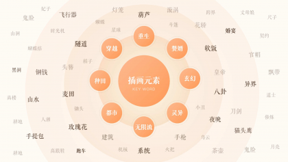 圖形的設(shè)計(jì)是最容易識(shí)別和產(chǎn)生共鳴的。在插畫元素的提煉上,為了能夠與小說網(wǎng)文氛圍結(jié)合的更緊密,我們以小說類型為劃分維度得出了一系列的具象的聯(lián)想關(guān)鍵詞。