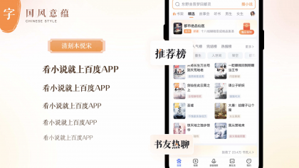 宋朝詩人汪洙在《神童詩》中有這樣的千古名句:“萬般皆下品,唯有讀書高。”讀書自古以來是成為高雅風(fēng)韻的文人士大夫的必經(jīng)之路。由此可見,自古以來讀書和雅致之間就結(jié)下了不解之緣,閱讀與國風(fēng)雅頌的風(fēng)格也就找到了完美的交匯點(diǎn),因此小說設(shè)計(jì)團(tuán)隊(duì)在確定設(shè)計(jì)風(fēng)格的探尋中,選擇了國風(fēng)的風(fēng)格來體現(xiàn)百度小說的人文感的設(shè)計(jì)。