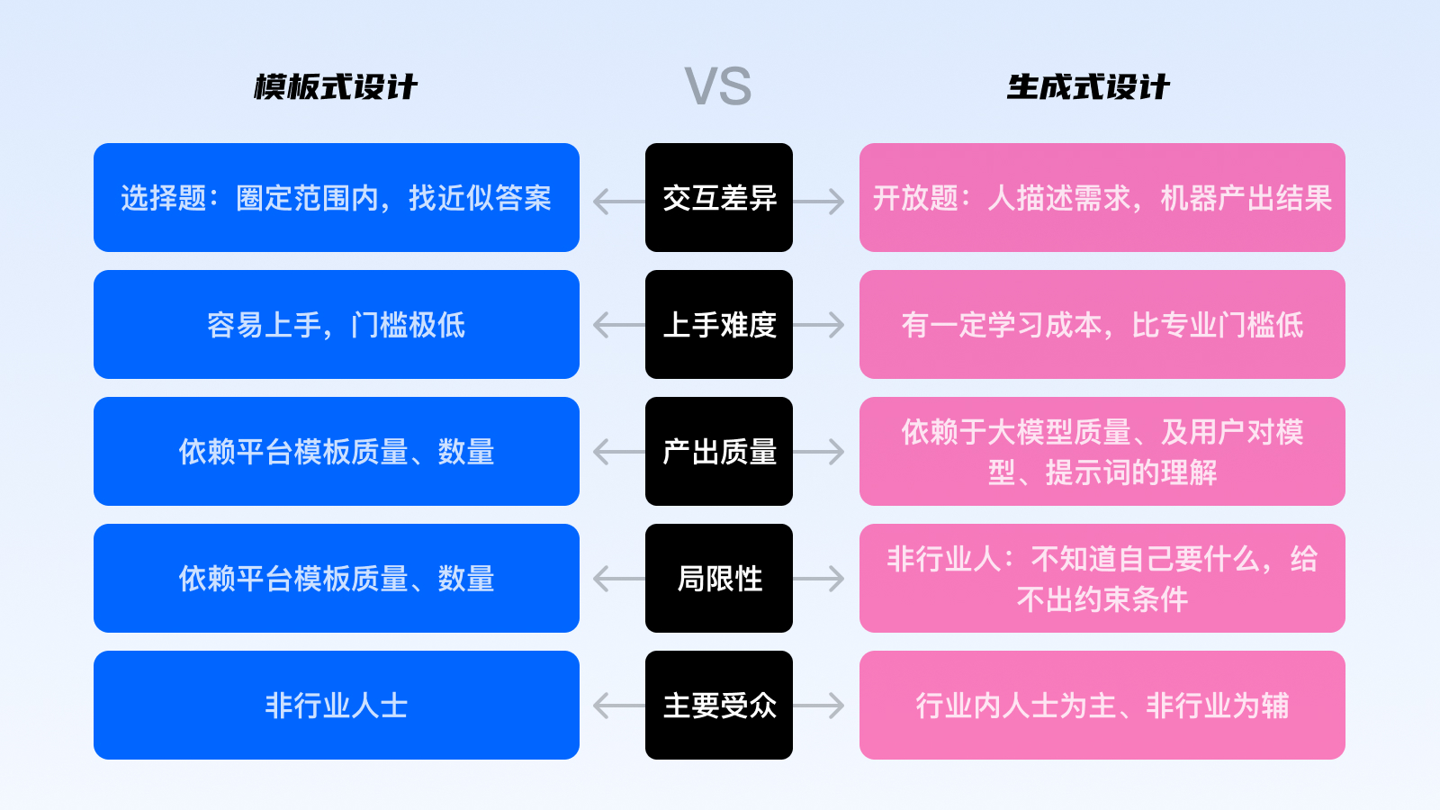 僅討論目前的產品,模板式設計是非專業設計師的生產工具,生成式AI工具是專業設計師的“外掛”武器。