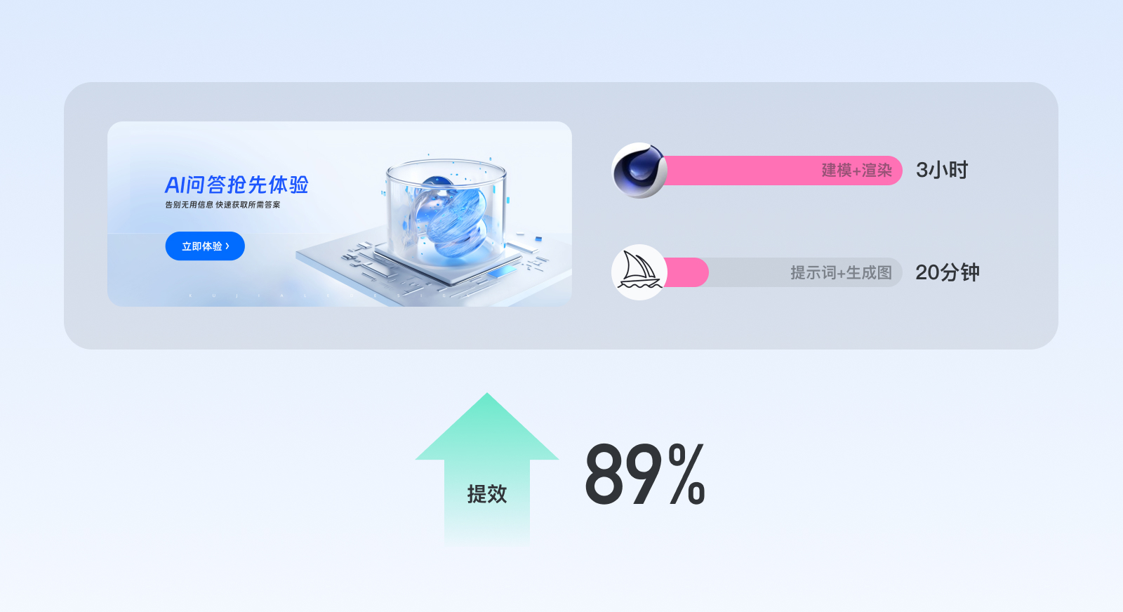 相比C4D做一個素材,可以大大提升出圖效率,這種與AI協作的形態,市面上也是最多的,本質是增強設計師產出的效率。
