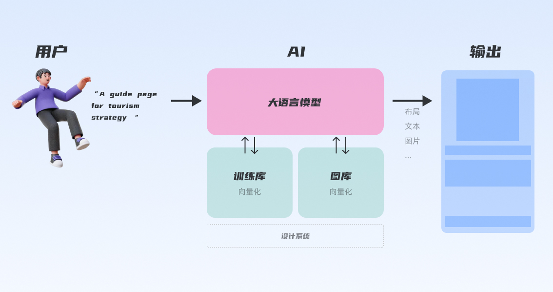 結合設計場景,利用大語言模型分析、推理、總結能力,可以輔助設計完成內容總結、報告內容提煉、知識解讀、內容續寫、創意發散與腦暴等場景。