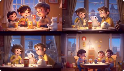 在前期,我們對構想的畫面進行關鍵詞的描述:“可愛帥氣的男女孩子們一起玩手機,開心地微笑著,舉起手歡呼,溫暖的房間,大型落地窗。”將關鍵詞翻譯后放入Midjourney中進行煉圖,最終篩選了幾張氛圍還不錯的進行下一步操作。