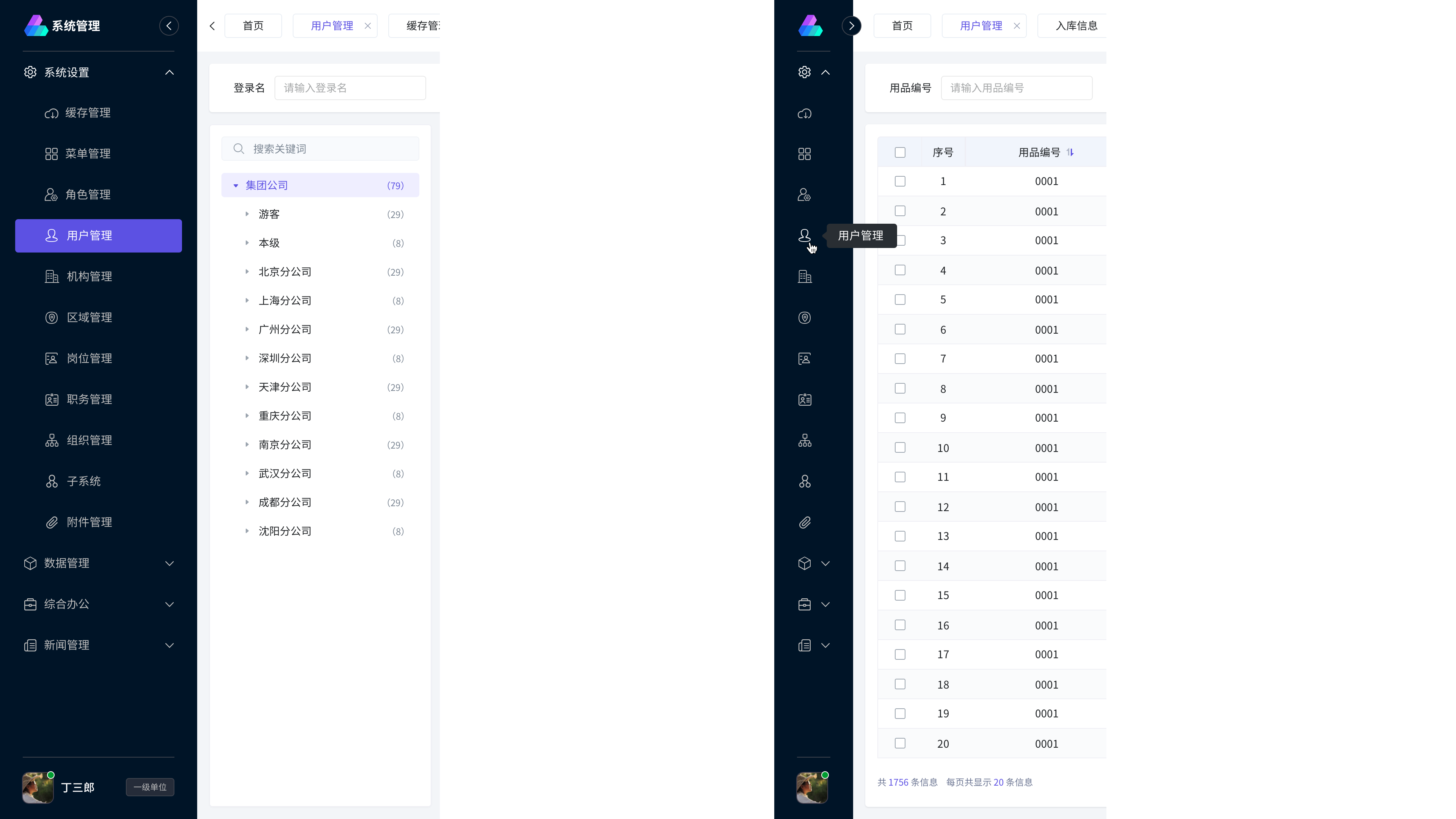 展示靈活(側邊導 航可收折,收折過后用戶的橫向核心空間將會增大大,頁面展示效率也會大大提高)