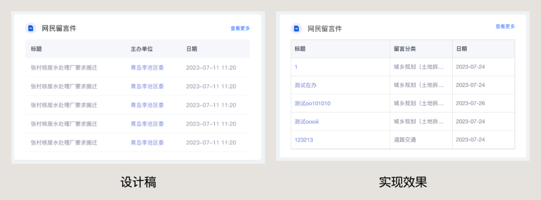 這就導(dǎo)致,如果前端開發(fā)使用了一款前端框架,那么設(shè)計稿中使用的組件是這套框架中帶的,那就直接調(diào)用這個樣式,只要功能實現(xiàn)出來,樣式上能不改那就盡量不改。包括圖表也是,圖表也基本使用第三方的框架,所以實現(xiàn)出來和設(shè)計稿最多就是顏色接近,其它哪里都不像,比如下面的真實案例。