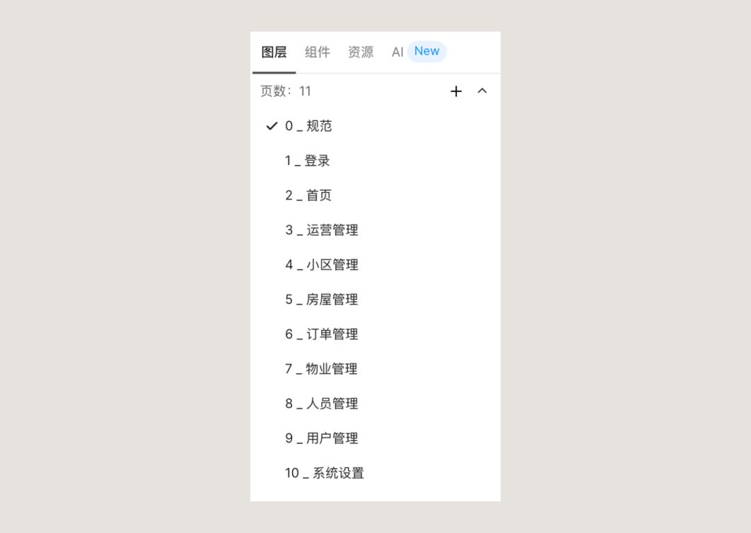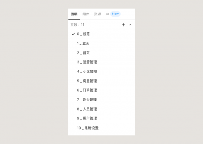 Page 就是軟件左上的畫布列表,一個項目如果頁面多,就一定要用 Page做拆分。而在我們當前的場景中,就可以根據(jù)交付的模塊階段劃分,每個模塊創(chuàng)建一個 Page,這樣開發(fā)在本次項目中只需要查看這個源文件就可以。