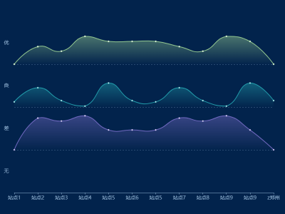 折線圖適用于展示數據的趨勢變化。折線圖可以顯示一段時間內數據的變化趨勢,例如溫度、銷售額、人口變化等。折線圖可以清晰地顯示出數據的峰值和谷值,以及趨勢的變化速度。