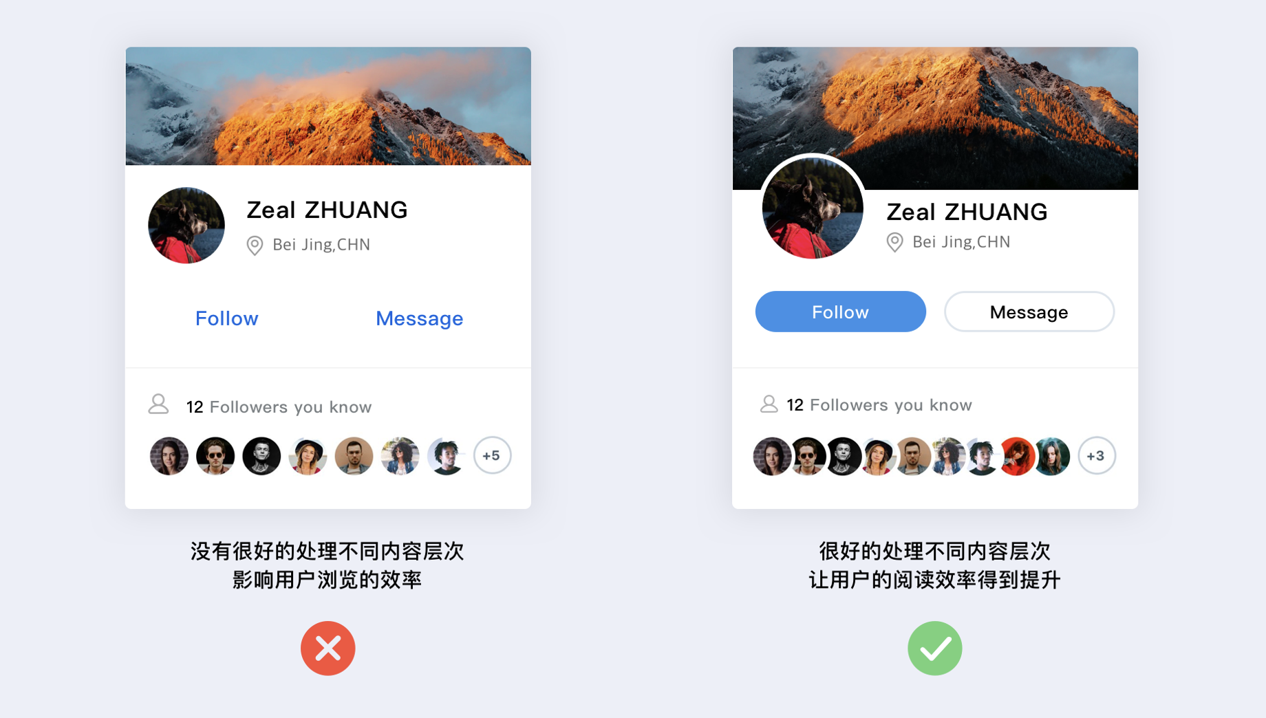 - 漸變與過渡蒙層:如圖片上增加蒙層后添加 icon,兼顧功能與美觀。