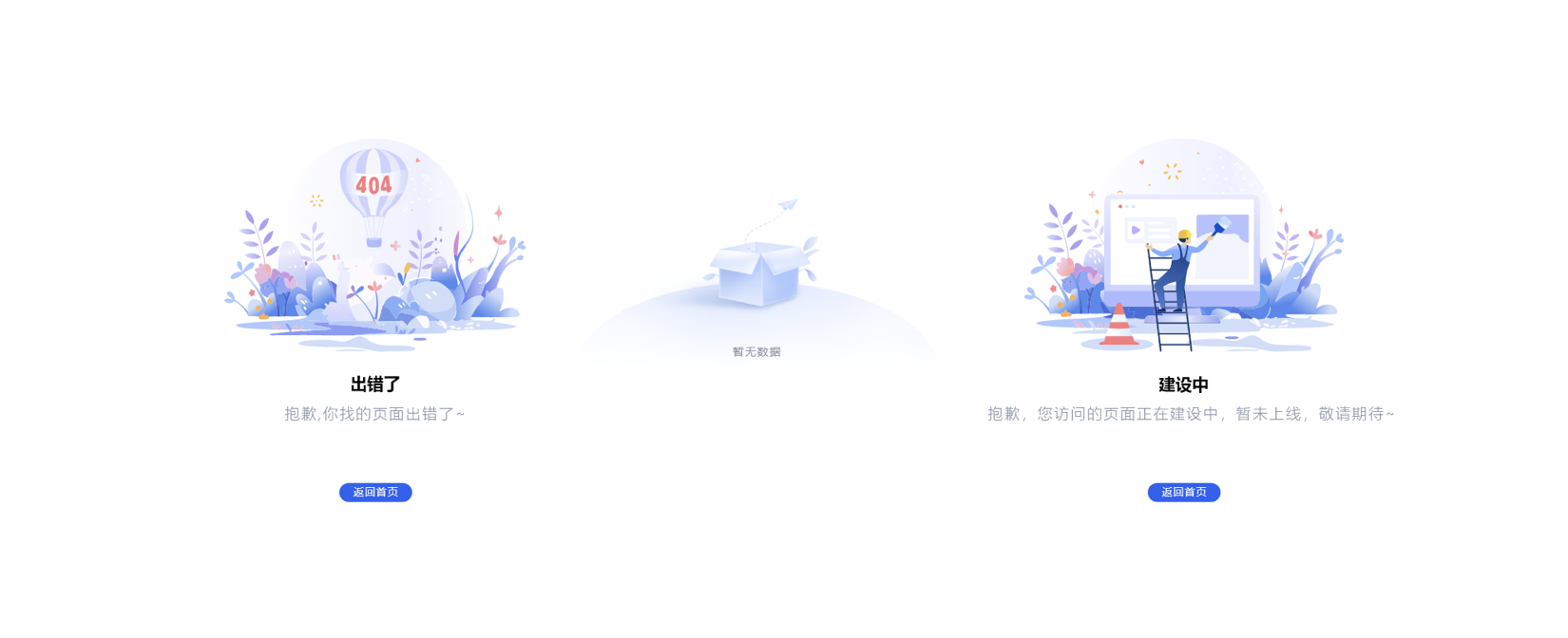 • 狀態提示圖標:緩解用戶焦慮。如 “404 頁面” 的 “迷路小圖標”、“暫無數據” 的 “空文件夾圖標”,讓用戶理解當前狀態;