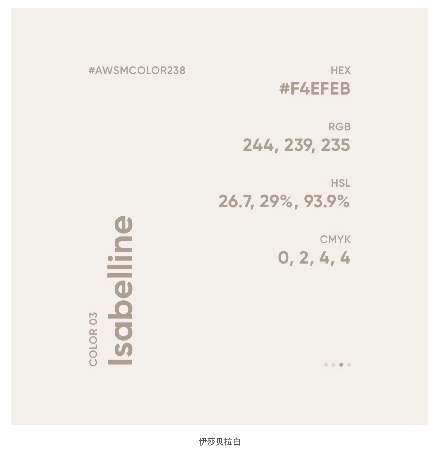 色值 #F4EFEB 的伊莎貝拉白,是介于灰白與淺米色之間的暖調白色,低飽和度的特質讓它自帶一種歲月沉淀的溫潤感。這種顏色的名字源于一個充滿獵奇色彩的傳說:17 世紀初,哈布斯堡王朝的伊莎貝拉公主為等待出征的丈夫凱旋,發誓三年內不換洗內衣,最終衣物形成的色調被稱為 “伊莎貝拉白”。
