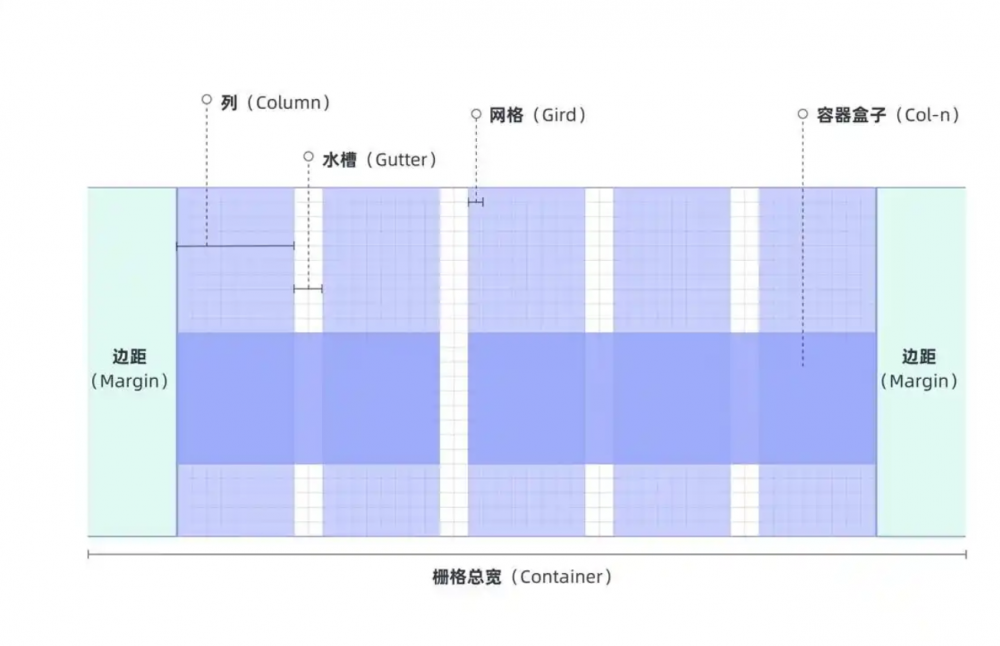 下圖中就是最常見的一個數字界面柵格結構,包括: