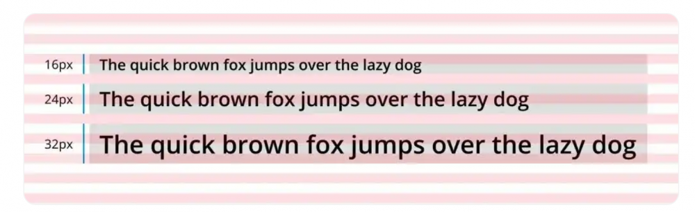 在上方的示例中,每8px行在紅色和白色之間交替。將文字的所有行高設置為基本單位(8x或4px)的倍數,可以讓文本和基線網格完美對齊。