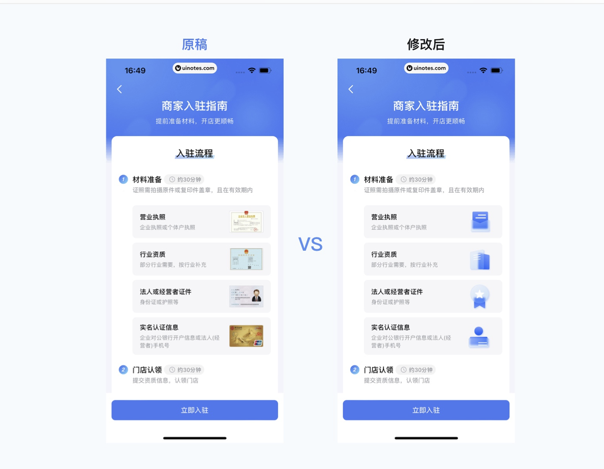 “設計稿我已經交了,落地不好是開發的問題”,這種想法是設計師成長的最大阻礙。設計不是孤立的環節,而是商業流程中的重要一環,從需求對接、方案設計到落地還原,每個環節都需要設計師主動介入。曾有團隊做一款商家入駐 APP,設計師提交的方案視覺效果極佳,但多個特效超出技術實現范圍,反復修改后不僅延誤上線,還讓設計效果大打折扣。