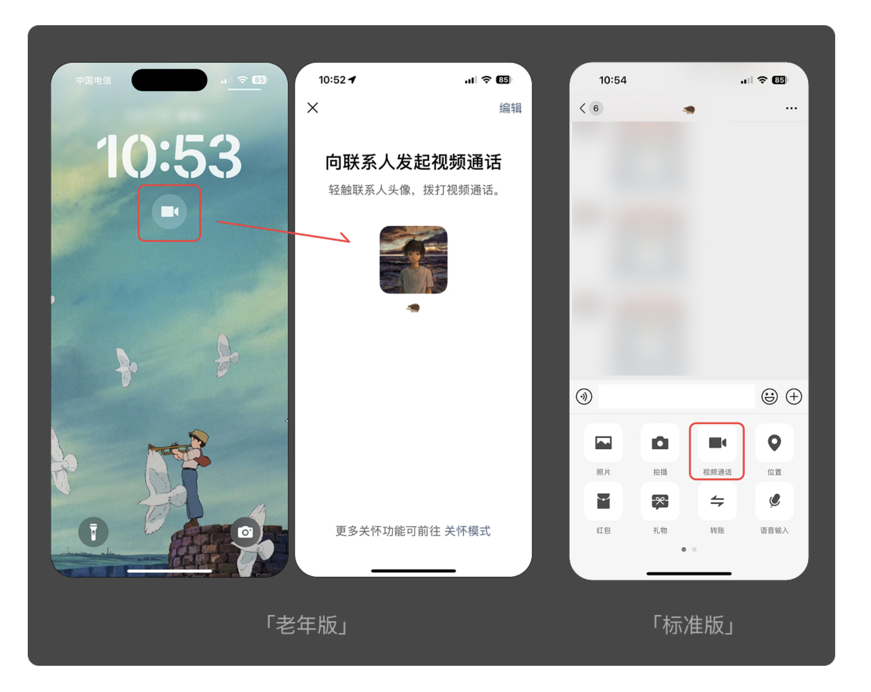 老年用戶的操作耐心與記憶能力相對有限,過多的點擊步驟和冗余功能會顯著增加使用門檻。滴滴老年版的設計堪稱典范:摒棄了標準版 “輸入目的地 - 選擇車型 - 確認叫車” 的復雜流程,在首頁直接設置 “呼叫出租車” 核心按鈕,老人無需額外學習,點擊即可發起叫車,直觀又高效。無獨有偶,QQ 老年版也對 “動態查看” 功能進行了優化,標準版需要兩次點擊才能進入的頁面,老年版只需一次點擊便可直達,大幅提升了操作效率。這種 “減法設計” 的核心,是剝離非必要功能,讓老人的注意力集中在核心需求上,避免被無關信息干擾。