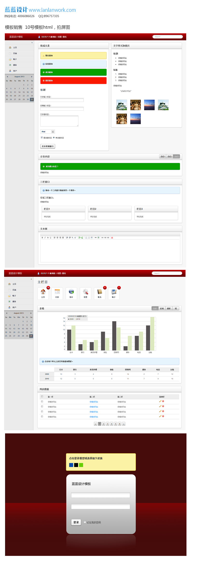 內(nèi)容:包含列表頁、輸入頁、目錄頁共3頁html、images/css/div
