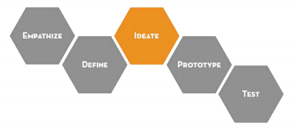 第三步:Ideate(“設想”,其實就是做頭腦風暴,盡可能多的去想解決方案,想自己項目可能涉及到的人,然后再簡化為一個具體的方法)。