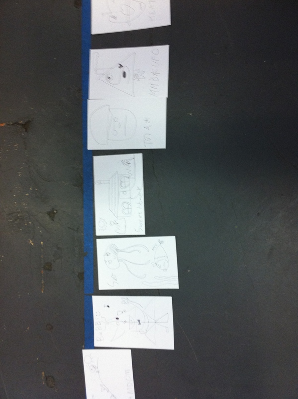 (然后是升級版,所有人一個(gè),一人一筆去創(chuàng)造一個(gè)人物,還要給它命名。這個(gè)很有意思,因?yàn)闀玫酵耆饬喜坏降慕Y(jié)果,而越到后面卻越有默契,能“感應(yīng)”得到大家都在往一個(gè)方向走,最后起的名字似乎就都是大家所希望的)