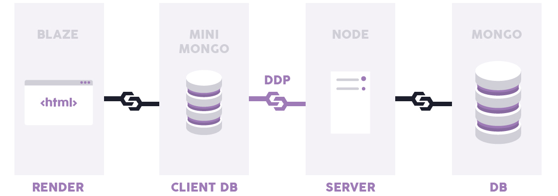 此外,Meteor特別適合于那些想要構建實時web app的開發人員。所有從數據庫到模板的app層都會自動更新。這是它的工作原理——