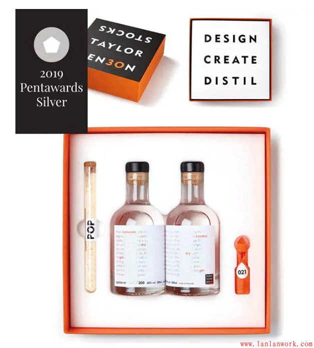 今年飲料類的「鉑金獎」被來自英國愛丁堡的LIND & LIME GIN獲得。包裝設計由蘇格蘭的創意團隊 Contagious 操刀,酒瓶設計的靈感源于品牌商The Port of Leith Distillery所在的Leith 地區海岸上具有歷史意義的工業建筑以及老窯.