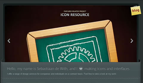Icon Designer 通過旋轉某些元素讓自己與眾不同。這一頁面很容易成為稀松平常的無聊之作,但簡單的幾個旋轉讓它趣味十足。