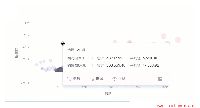 (3)查看數(shù)據(jù)分布情況。對(duì)于錯(cuò)綜復(fù)雜的變量之間關(guān)系,可以通過圖表來找出規(guī)律。比如利用氣泡圖進(jìn)行回歸分析。