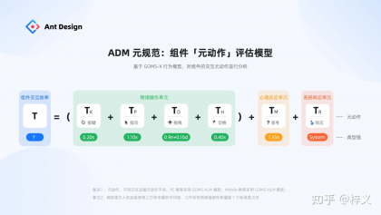 在螞蟻內部,我們還將原規范應用到其它設計系統的建設當中。比如,Ant Design Mobile 5.0 今年引來大版本的更新,從 200+ 的冗余組件收斂成了 68 個通用組件,同時通過評估發現其組件質量也提升了不少,系統中單組件平均交互行為耗時從 3.42 降到了 3.17,高于業界平均。
