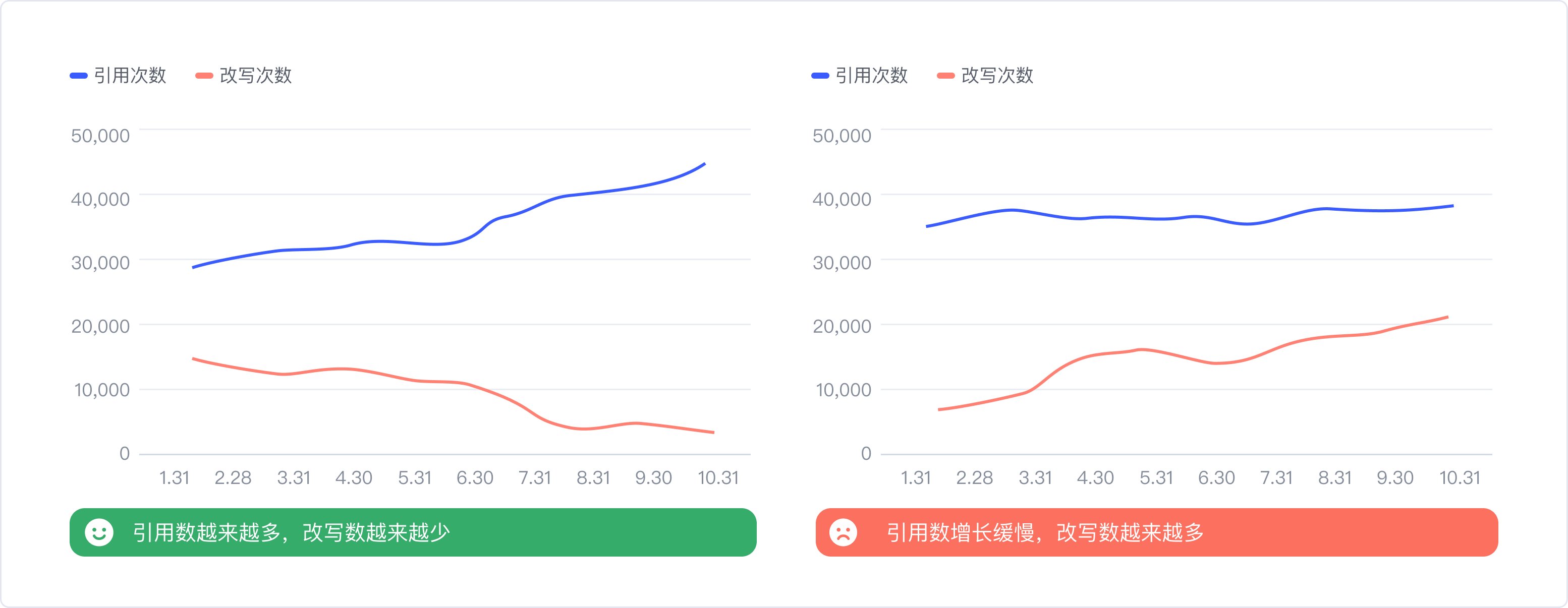 解:把所有組件的引用次數加和,得到總體數值,并結合時間維度,觀察組件庫整體改寫數與引用數各自的變化趨勢。用線形圖來描述的話,隨著時間推移,引用越多,改寫越少,兩條線呈開口狀,那就表示組件庫處于越來越健康的狀態。反之則需要警惕了。同時我們搭建了一套評分體系,基于引用/改寫數值,通過歸一化和加權等一系列計算,by月/季度給組件庫易用性打分,也能精準的知道組件庫易用性的表現,如果分值是下降的,就要具體去定位哪些組件出了問題,再根據上述的方法相應地進行升級。