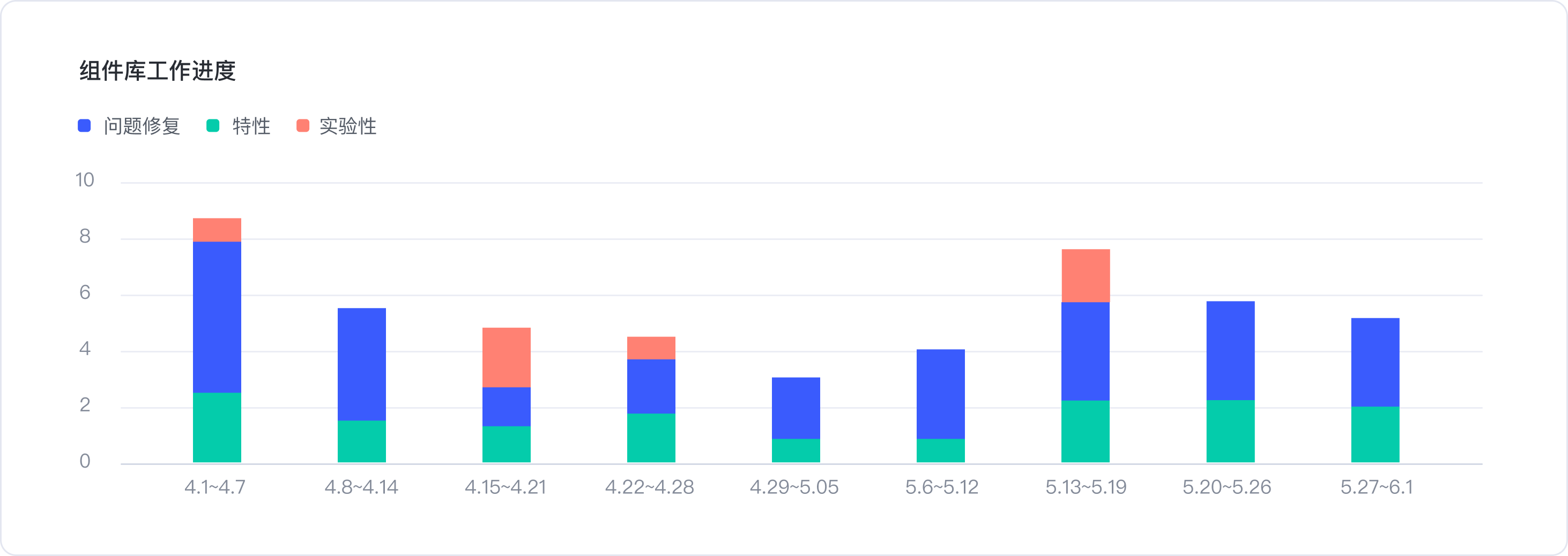 1.組件庫迭代進度-迭代性質可分為問題修復、特性和實驗性功能增優。