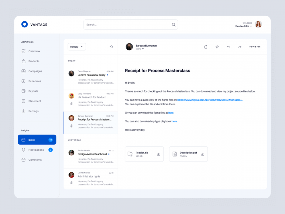 在開發產品時,把 UI 界面體驗變得 更感性,讓用戶覺得屏幕另一端運行程序的是 真實的人類 而不是冰冷的計算機。在用戶完成一項個人目標時給予他們 獎勵。例如,即便用戶的收件箱沒有新增郵件時,可以利用動畫讓用戶在體驗上有更多的 參與感 。