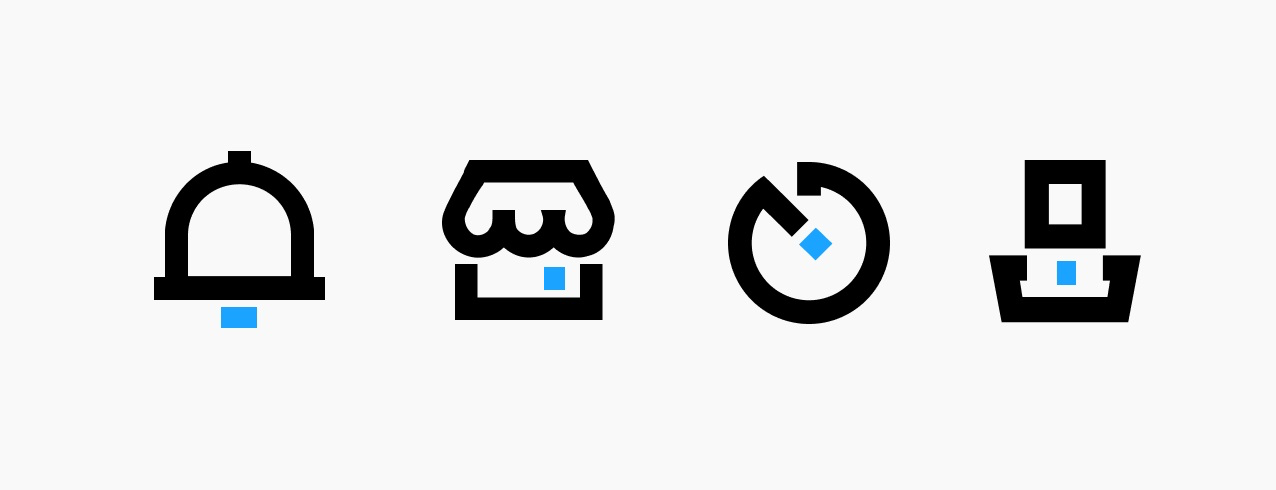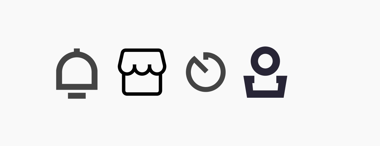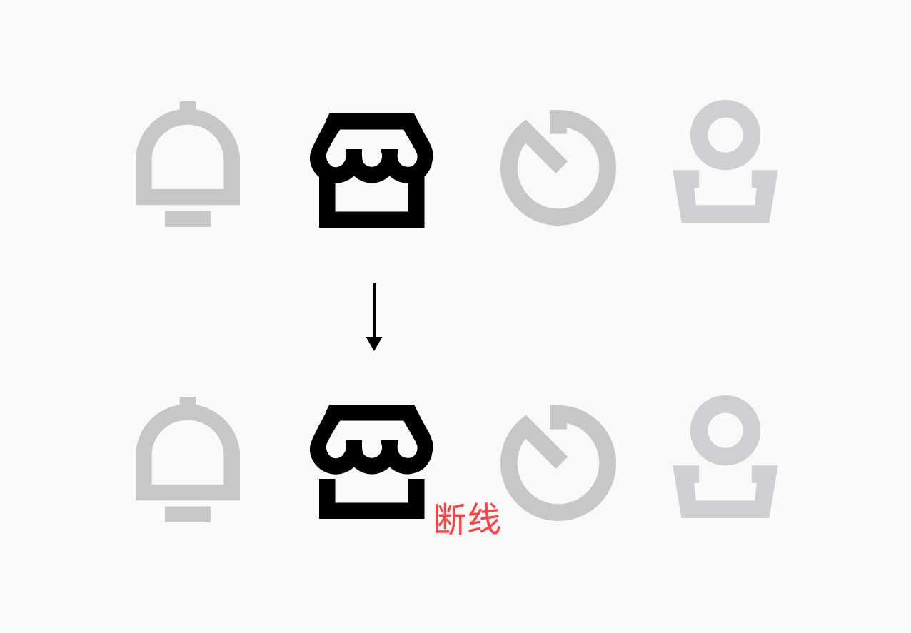 大家要明白,雖然我們可以直接下載圖標(biāo)素材,而且可以通過(guò)審美讓他們變得相對(duì)精致統(tǒng)一,但素材畢竟還是通用的,我們還是需要融入自己的想法和設(shè)計(jì),不能完全依賴素材,舉一個(gè)最簡(jiǎn)單的例子,“我的”這個(gè)圖標(biāo),他的腦袋是圓形的,那我們是不是可以把他改成矩形的?