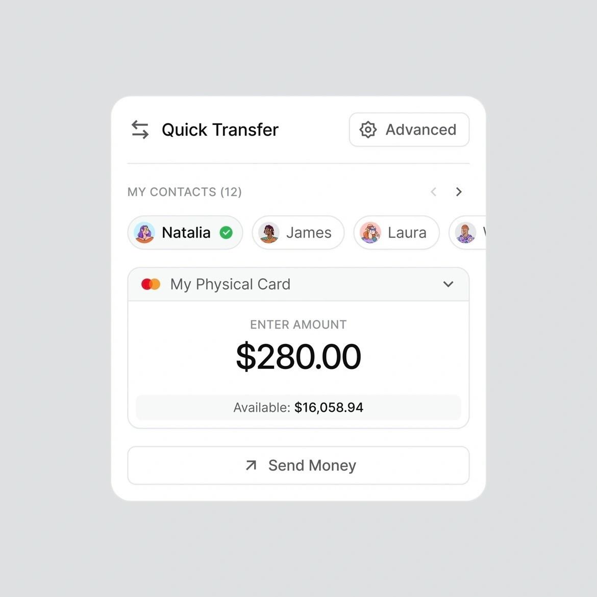 1.   功能介紹:圖文搭配(Analytics、Expense、Send Money)→ 以可視化方式分塊展示。
