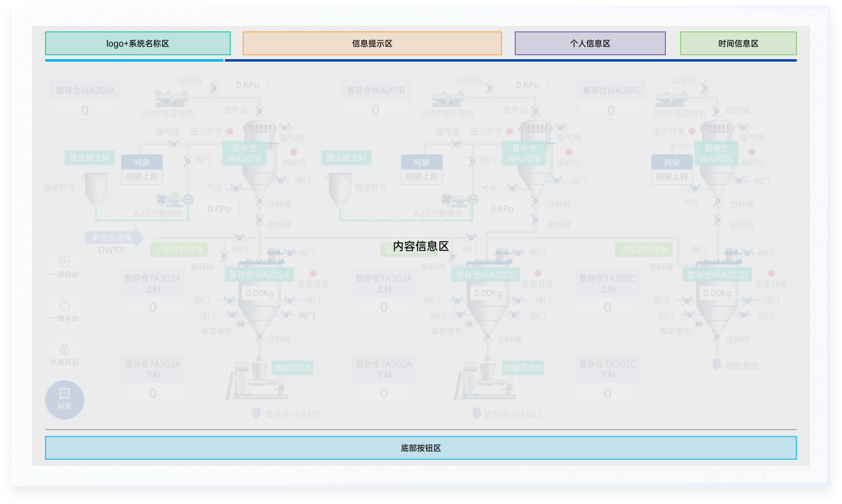 依據行業屬性和交互方式,使用環境的分析結果,對界面區域進行了相應的劃分,通過區域的大小和顏色區分信息的重要程度,主要信息+輔助信息,以結構化的方式像用戶輸出多維信息,讓用戶直觀全面獲取信息,為決策和操作提供依據。