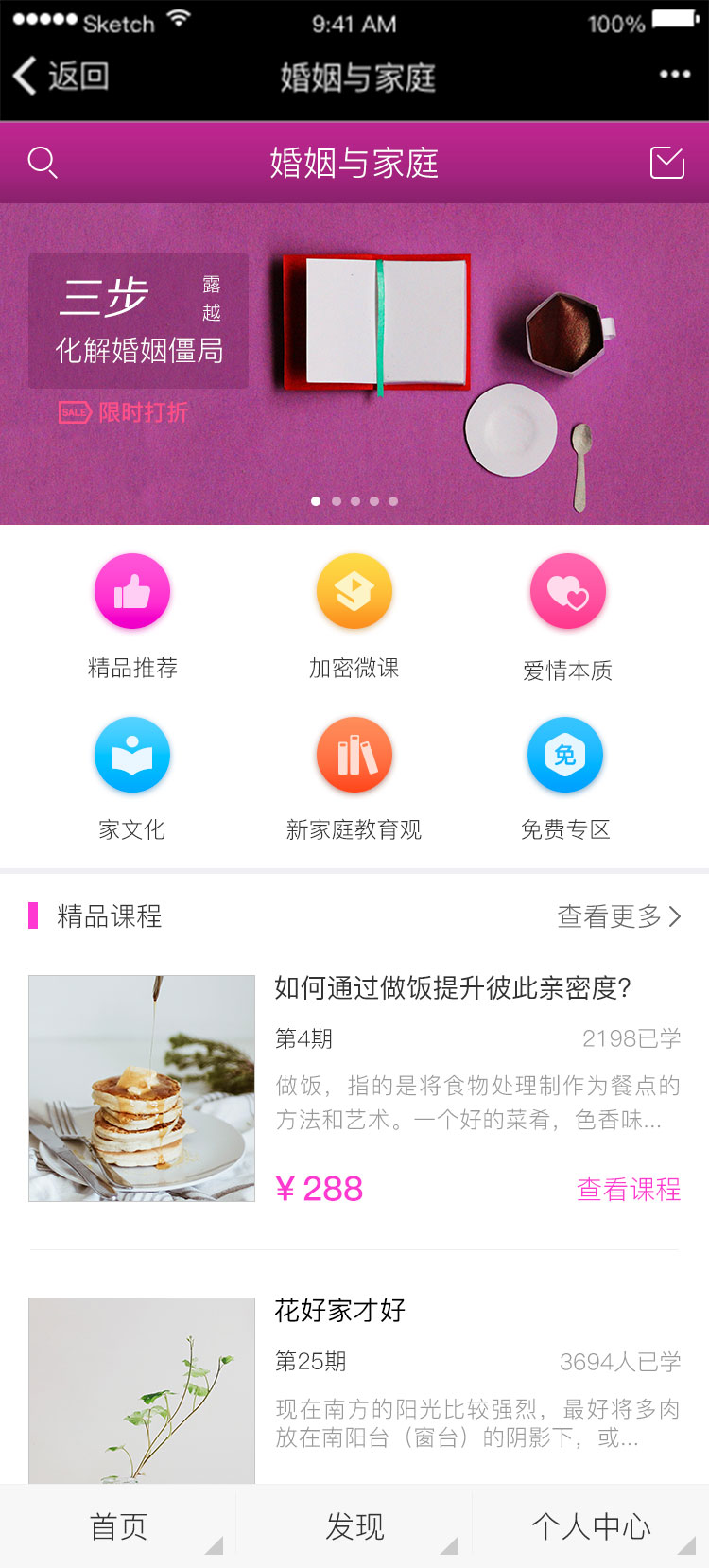 2.在交互上采用左右滑動(dòng)的方式,保證用戶可以快速切換不同的內(nèi)容,精細(xì)化 的有助于幫助沒有明確目標(biāo)的用戶快速找到感興趣的課程;